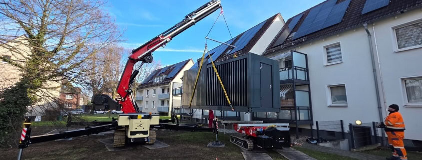 Es gibt Einsatzorte, da kommt man mit einem Autokran einfach nicht hin. In unseren eng bebauten Wohngebieten reicht die Dimensionierung der Zufahrten oftmals nicht für große Autokrane aus. Auch die Sperrgenehmigung für das Aufstellen eines Großkranes auf der Straße ist mit langen Antragsfristen und oftmals kostenspieligen Auflagen verbunden. Im Einzelfall wird der Genehmigungsantrag sogar abgelehnt.